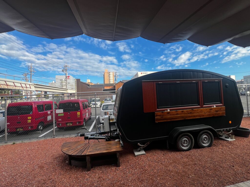 トレーラーハウス(シェアキッチン)にオープンエアーのデッキテラスを備えています。 また、同一敷地内の空地部分には2.5m四方のテントが3つ張れるスペースもあり、ちょっとしたイベントも開催できます。 敷地内に、簡易水洗トイレや手洗い設備もあり、ご来店いただく方にオープンエアーの解放感と同時に快適に過ごしていただくことができます。 また、キッチンは飲食店営業許可を取得しており、給排水設備、ガス・電気設備を備えています。ガスレンジや冷蔵庫など、直ぐに飲食提供できる機材も装備しています。 ※但し、ご利用の際には「食品衛生責任者」の資格保有が条件となります。 その他、備え付けの什器備品については、画像の一覧をご参考ください。 また、同敷地内にはキッチンカーやテント張りによる物販・食品販売できるスペースもあります。※飲食物販売の場合は、許認可等にご注意ください。